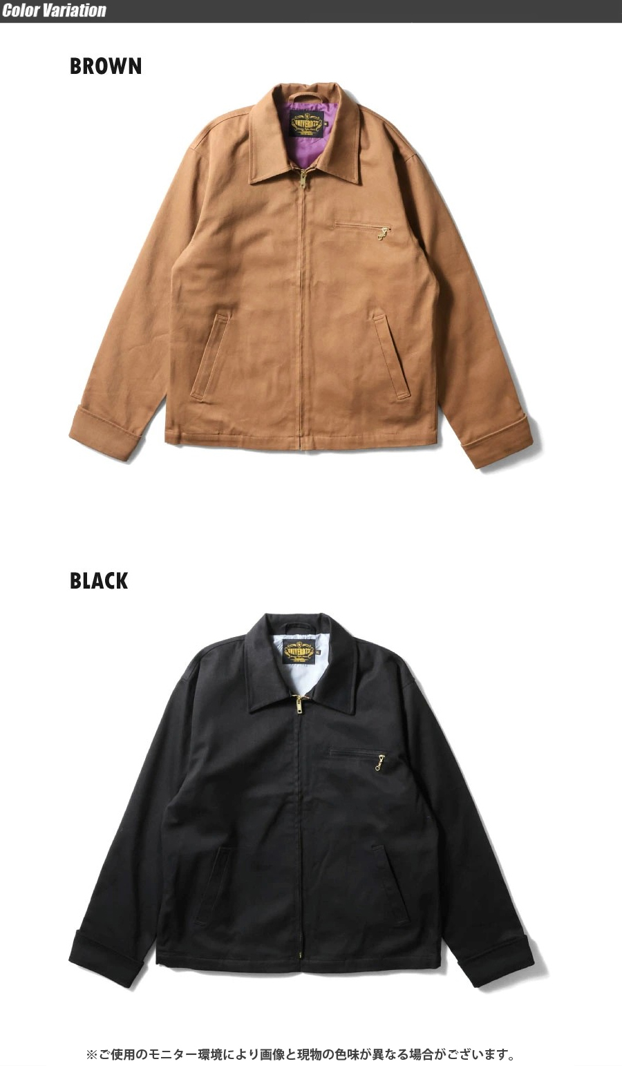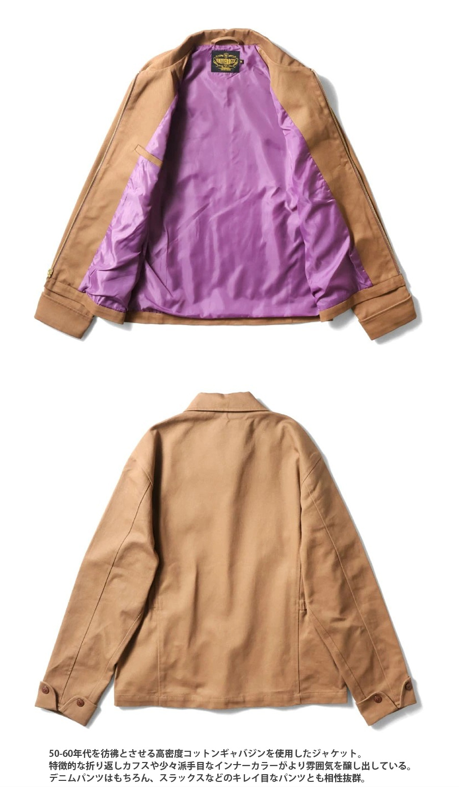 50-60年代を彷彿とさせる高密度コットンギャバジンを使用したジャケット。特徴的な折り返しカフスや少々派手目なインナーカラーがより雰囲気を醸し出している。デニムパンツはもちろん、スラックスなどのキレイ目なパンツとも相性抜群。