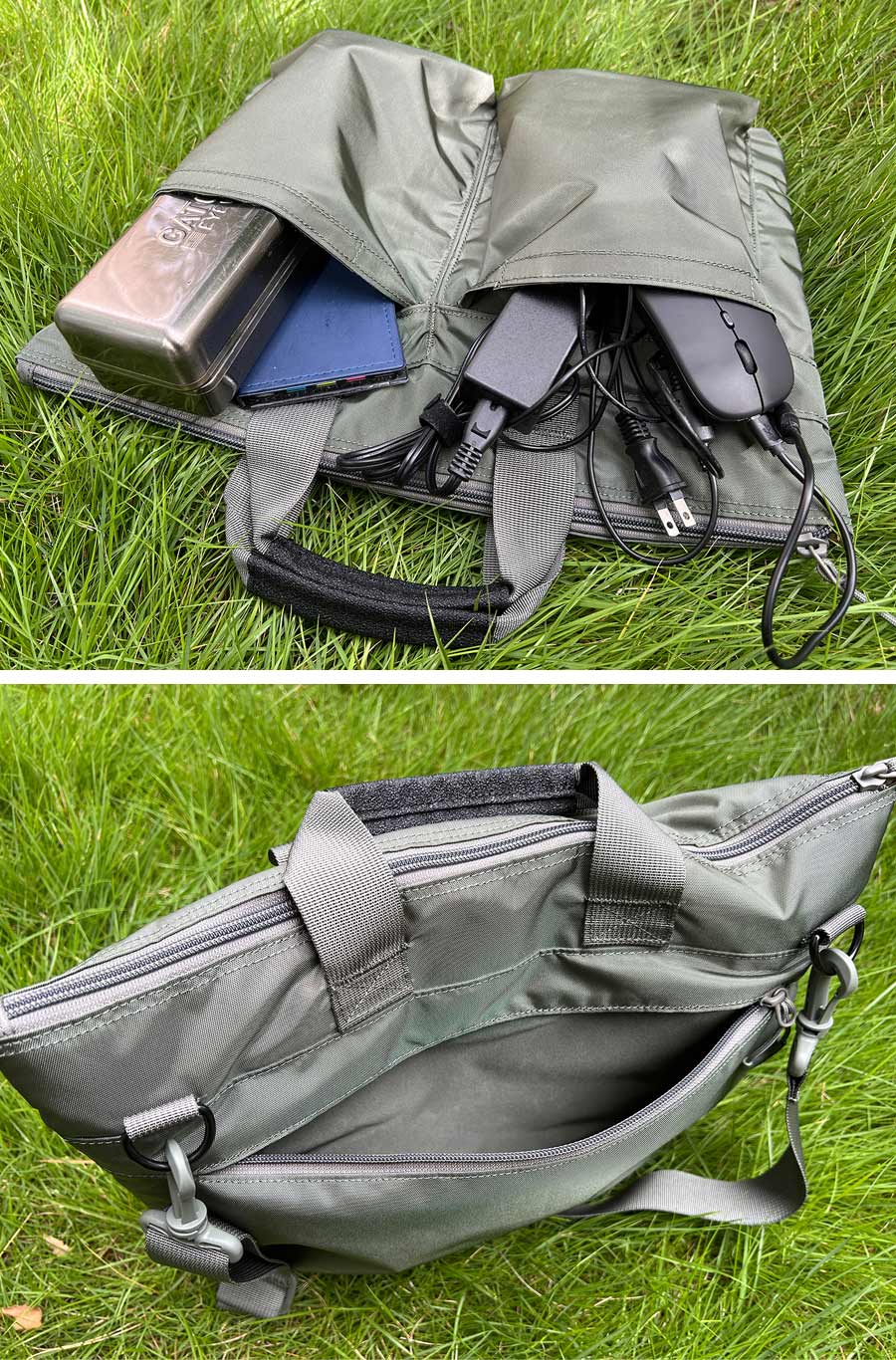 ・内側は緩衝材にもなるキルティング加工・フロントに2つのボタンポケット・背面に大型ボタンポケット・内側にポケットあり・ショルダーストラップは取り外し可能・横40.5cm/高さ33cm/幅2cm・容量2.6L