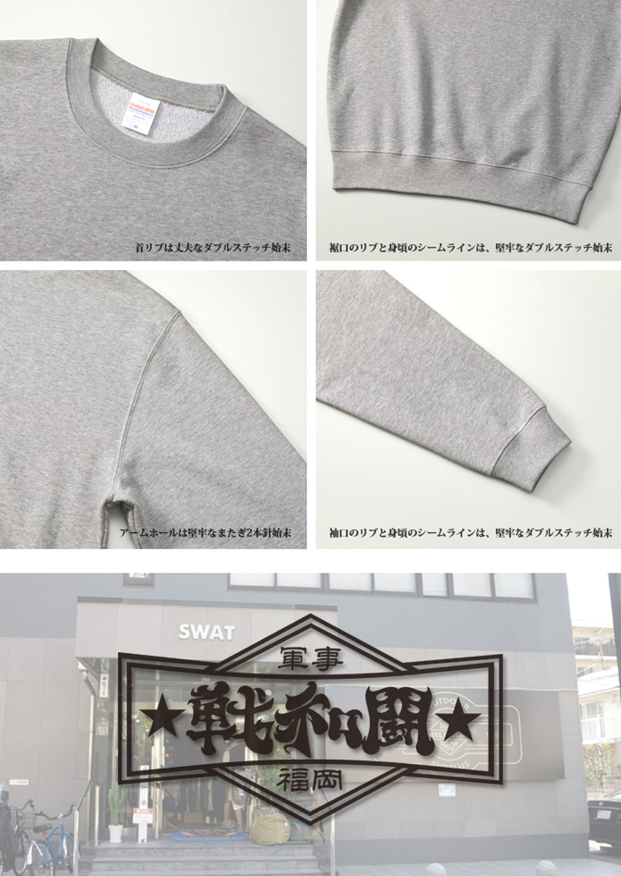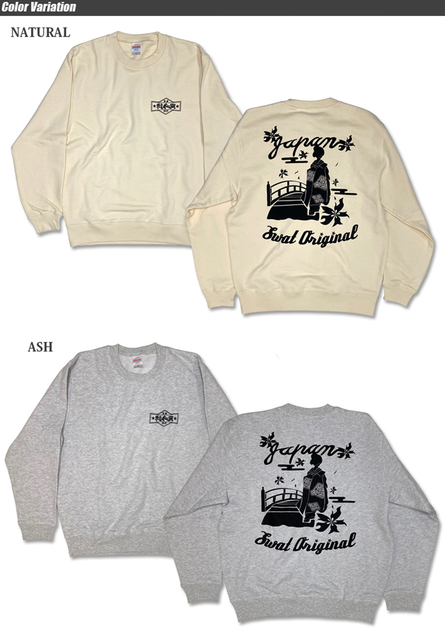 フロント部は当店SWATロゴを漢字にし、オリエンタルな雰囲気に。バックはスカジャン定番の舞妓を使いデザインしました。戦争と平和の対立や戦いを示唆する意味が込められてます。コットン100% 10oz 裏パイルボディを使用。プリントは抜染プリントとなっています。※個体によりプリント部の色味が異なる場合がございます。
